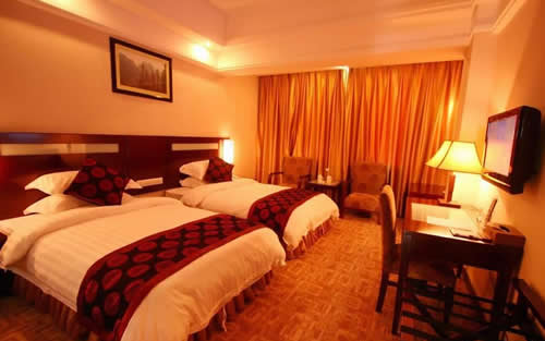 武陵源錦華大酒店是一家按國家四星級標(biāo)準(zhǔn)、2009年5月新修建成的豪華旅游度假酒店,地理位置優(yōu)越,位于武陵源汽車站旁.酒店集觀光旅游、度假、商務(wù)會議、品嘗土家美食等多功能為一體,酒店建筑融合張家界地區(qū)的民族風(fēng)情和建筑文化,是張家界地區(qū)最有土家風(fēng)情的星級酒店之一。 武陵源錦華大酒店安裝了數(shù)控中央空調(diào)系統(tǒng)、空氣源熱水系統(tǒng)。24小時供應(yīng)冷熱水。 武陵源錦華大酒店擁有客房100間,其中套房3間、標(biāo)準(zhǔn)間96間、單人間1間,客房內(nèi)配有液晶電視、閉路電視和寬帶接口;餐要包廂8個、豪華包相一個、極具當(dāng)?shù)靥厣摹盎鹂游荨卑鼛?個、中餐宴會廳可同時容納300人就餐。酒店還配備一個高標(biāo)準(zhǔn)多功能的現(xiàn)代化會議室,安裝有電視電話會議系統(tǒng),可以舉行各種類型的中小型會議。