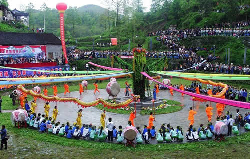 鮮麗奪目的苗族服飾,情調(diào)別致的攔門(mén)酒,風(fēng)格獨(dú)特的卡鼓、攔路歌、邊邊場(chǎng),會(huì)使你耳目一新,如癡如醉;還有傳統(tǒng)節(jié)日"四月八"的跳月跳花,"六月六"的山歌對(duì)唱,又會(huì)使您心動(dòng)神搖,嘆為觀止。