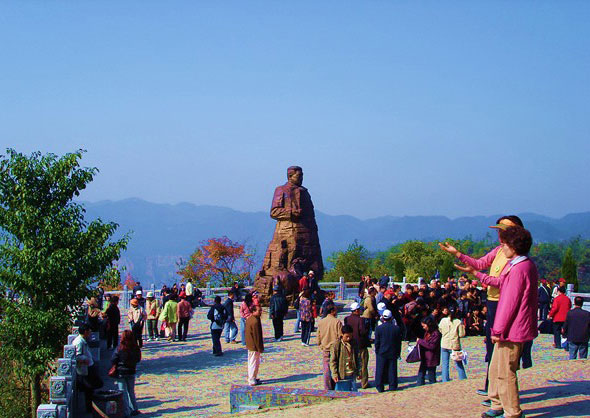 坐落在1200米的千層巖左側(cè)。公園內(nèi),屹立在“云青巖”上的賀龍銅像與大自然連為一體,形成獨特的藝術(shù)風格。這是我國近百年塑造的最大的一尊銅像。