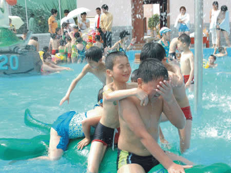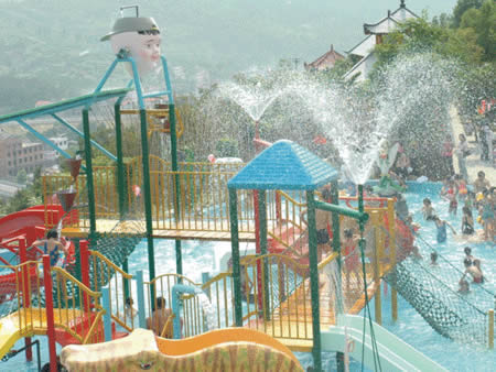 卡通噴泉、急速滑梯……這里的童話世界讓您的孩子恍若天使般幸福、快樂!銀鈴般的笑聲,充滿童稚音的歌聲,響徹云霄。美妙的孩童時光從這里開始,五彩斑斕的人生從這里起步。水溫36-38度,專為兒童設計,設有水上滑道和花樣繁多的兒童小品:蘑菇噴淋、水槍、浮漂等,讓您的孩子盡情釋放活潑快樂。