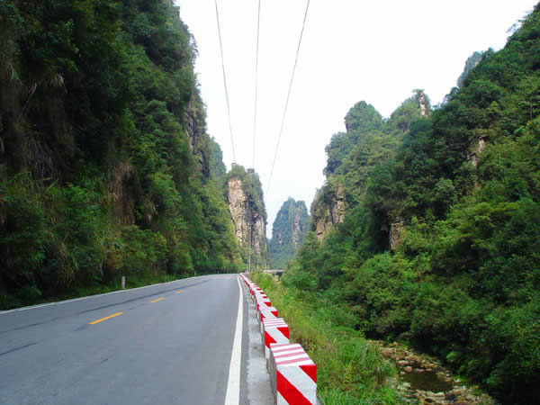 百丈峽圖片 百丈峽是武陵源風(fēng)景名勝區(qū)通往張家界市的公路貫通整個(gè)峽谷,因有堵高近百丈的石壁,直插云霄,不敢仰視,故而得名。據(jù)《慈利縣志》載,索溪峪右得百丈峽,峽長(zhǎng)三十公里……又相傳向王天子起義軍與官兵在此先后博殺一百仗,依此又名百仗峽。明代九永兵備胡桂芳,一生好游歷山川,來(lái)到百丈峽后題寫(xiě)了一首七言詩(shī):“峽高百丈洞云深,要識(shí)桃源此處尋;戎旅徐行風(fēng)雪緊,誰(shuí)將興盡類山蔭!笨逃趰{內(nèi)道旁石壁上。