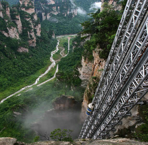 現(xiàn)在位置:張家界旅行社->景區(qū)景點->張家界旅游景點 -> 百龍?zhí)焯輄百龍電梯_張家界百龍?zhí)焯輄水繞四門觀光電梯