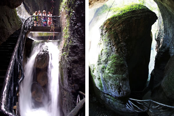 走在吊橋中間,必須保持自身的平衡方能安全通過,不然就會在吊橋上搖擺不定。走出仙女峽谷,往下看,深不見底,七潭七瀑在奇險之中不乏壯觀,這里曾發(fā)生過跳潭救女的故事。