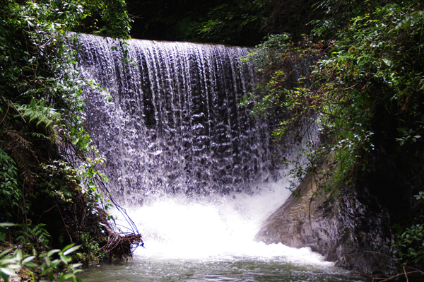 俯身這超然脫俗的雪花溪水,有點思想上的蒼白。這是人間之水?那樣的虛幻,那樣的飄逸,那樣的晶瑩透澈。靜靜地流淌千年,晃動水底的鵝卵石,飄搖水面的落花,驚恐狀橫行的螃蟹。這溪水從老道灣山洞、森林漫溢出來,以峽谷崖石階梯為舞,以原汁的原始荒野為伴,時而輕歌時而喧嘯。宛如一條白絹自天而降,串就老道灣峽谷潭與瀑、谷與水、天人合一的自然美景。 走在這里,我們可以感到陣陣涼風(fēng)吹來,這里的溫度要比其他地方的溫度低大約5、6度,夏季,這里更是游客的避暑勝地。每一潭都有一個美麗的故事。