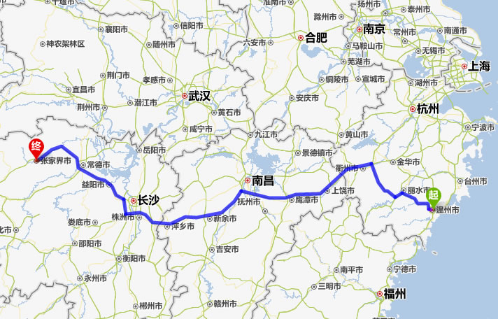 現(xiàn)在位置:張家界旅行社->交通指南->自駕車路線 -> 溫州到張家界旅游自駕車線路_溫州去張家界自駕車要多長時間_有多少公里