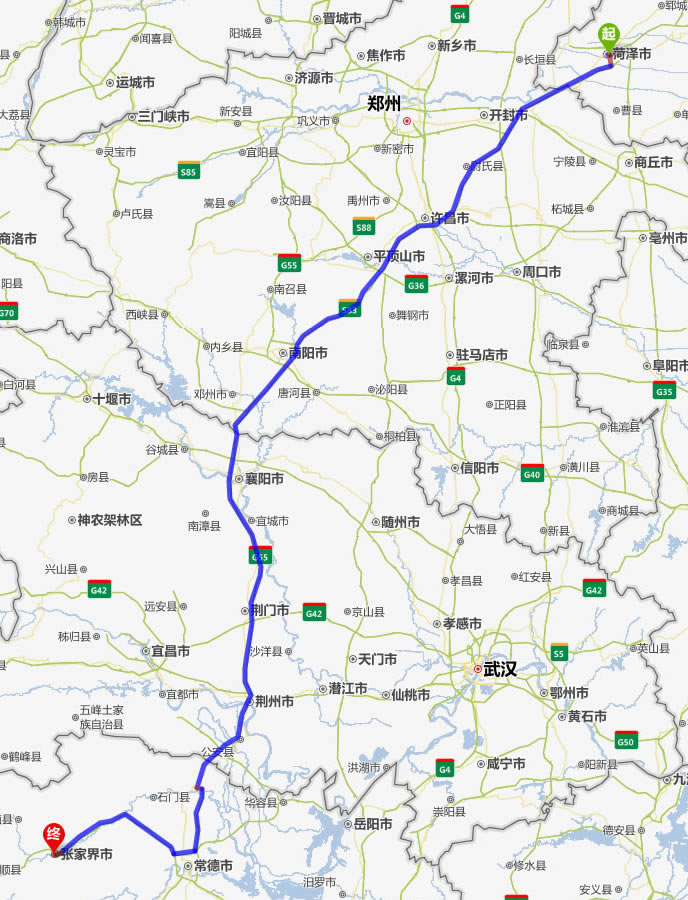 菏澤去張家界自駕車自助游線路圖全程高速):