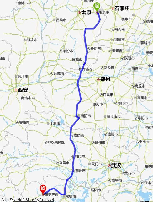 陽泉去張家界自駕車自助游線路圖全程高速):