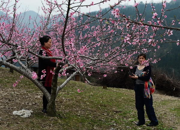 農(nóng)場主人提醒賞花客,清明節(jié)期間剛好是天子山桃花盛開的季節(jié),游客可乘景區(qū)環(huán)保車在農(nóng)場路段下車進入場內(nèi)賞花。