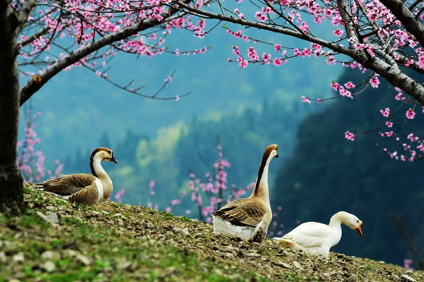 桃之夭夭,灼灼其華。據(jù)了解,天子山這處桃花仙境位于神堂灣至大觀臺之間的一農(nóng)場山丘內(nèi),面積足有一百畝以上。由于該地段剛好處于天子山至高點,因此極目遠(yuǎn)眺,峰林風(fēng)光、桃花美景盡收眼底。而盡管農(nóng)場,則是一派鄉(xiāng)村田園風(fēng)情,一群雞鴨鵝不時穿梭在桃樹林內(nèi),一邊尋覓食物,一邊享受春光;看家護院的小黃狗迎接游客的熱情叫聲,讓人頓生回歸鄉(xiāng)愁之感。