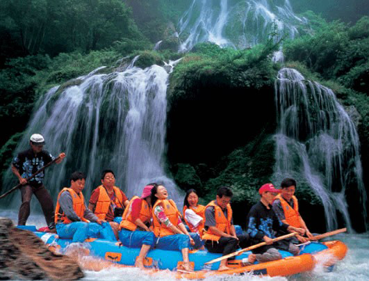 上 午:乘漂流公司專線車赴【猛洞河漂流】,(門票已含)赴漂流上站碼頭,體驗(yàn)“天下第一漂”,起點(diǎn)哈妮宮距王村約40公里,行車1小時(shí),終點(diǎn)牛路河距王村30分鐘的車程,漂流水路長(zhǎng)17公里,漂流兩個(gè)半小時(shí)。從哈妮宮放舟而下,一路是古老的河道,哈妮宮、山腳巖、捏土瀑布、回首峽、落水坑瀑布、夢(mèng)思峽、牛路河大橋等景點(diǎn)。絕壁百里,怪石嶙峋,灘奇水異,兩岸蒼翠的林木,云霧繚繞,飛瀑流泉與溶巖峰林交相輝映。拐一百五十五個(gè)彎,在一百三十三個(gè)灘潭中穿梭而行,迂回流連,馳魂奔魄,心曠神怡。猛洞河漂流被著名的社會(huì)學(xué)家費(fèi)孝通先生譽(yù)為“天下第一漂”;